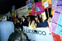 IX Marcha del Orgullo de Buenos Aires Multitudinaría y con camión propio, esta marcha del orgullo esta marcada por consignas propias del colectivo, pero, ademas una fuerte impronta crítica al Presidente de la Rua.