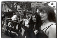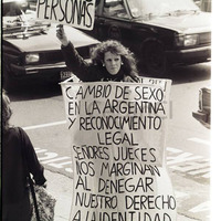 Karina Urbina manifestandose en el Congreso Nacional Una de las activistas transexuales de mucha relevancia en la lucha por la identidad en los años 90'. Realizo una serie de manifestaciones a las afueras de la lesgilatura Porteña, el Congreso Nacional y Tribunales. Formo la organización Transexuales por el Derecho a la Vida y la Identidad (TRANSDEVI) una de las primeras organizaciones de mujeres transexuales de Argentina.