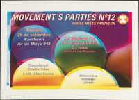 Volante. Pantheon. movement's parties 13. 1997 La "MOVEMENT'S PARTIES Nº13", la última de 1997, que tendrá lugar en Pantheon, ubicado en Av. de Mayo 948. El evento se titula "HOUSE MEETS PANTHEON".