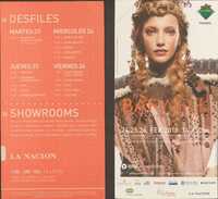 Volante. La Rural. BAFWeek . 2007 Este folleto promociona el BAFWEEK (Buenos Aires Fashion Week) que tuvo lugar del 22 al 24 de agosto de 2007, de 14 a 22 hs, en el Pabellón Azul de La Rural, Predio Ferial de Buenos Aires. El evento, presentado por diversas marcas y medios de comunicación, incluía desfiles de diseñadores y showrooms.