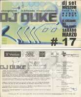 Volante. Museum. DJ Duke. 2001 Este documento es un anuncio para un evento llamado "MUSEUM" que se realizó un sábado 17 de marzo. El evento contó con varios DJs. Menciona a "El creador del Tech-funk". DJ Duke es descrito como un DJ con una larga carrera desde los años 70, conocido por sus sets de "deep", "hard hitting" y "heart-pounding" house, break y tech-funk. Ha editado más de 250 discos y ha tenido éxitos en Inglaterra, incluyendo "Blow Your Whistle". También ha tenido residencias en clubes de Nueva York como MARS, NELLS y THE WORLD.
