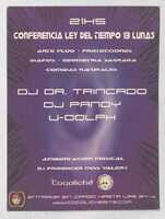 Volante. Cocoliche. Conferencia Ley del Tiempo 13 Lunas Flyer que anuncia una "CONFERENCIA LEY DEL TIEMPO 13 LUNAS". Menciona arte fluo, proyecciones de geometría sagrada y comidas naturales. Proporciona la dirección web: www.COCOLICHESITE.COM.