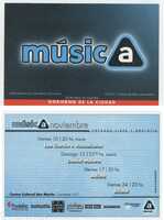Volante. Centro Cultural San Martín. Música. 2000 Flyer de "Musica" de noviembre