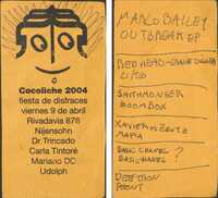 Volante. Cocoliche. Fiesta de disfraces. 2004 El archivo documenta una fiesta de disfraces el viernes 9 de abril de 2004 en Cocoliche (Rivadavia 878), cuyo lineup incluía a DJs destacados de la escena local como Nijensohn, Dr. Trincado, Carla Tintoré y Mariano DC