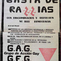 - Luego de una violenta razzia a un local bailable, los diversos grupos que confluyen en el GAG pegaron este afiche a lo largo de las avenidas Santa Fe y Corrientes, en el centro de la Ciudad de Buenos Aires.