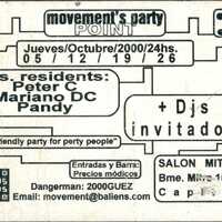 - Se promociona Movement's Party Point, un ciclo de fiestas los jueves de octubre de 2000 (05, 12, 19, 26) en el Salón Mitre (Bme. Mitre 1552). Los DJs residentes eran Peter C, Mariano DC y Pandy, y se destacaba que la entrada y la barra ofrecían "Precios módicos"