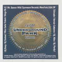 - Este documento es un folleto o afiche para un evento llamado "UNDERGROUND PARK" que tuvo lugar el 13 de diciembre de 1997 en Buenos Aires. El evento, que incluía la frase "Suspende por lluvia", ofrecía la venta de entradas anticipadas con descuento en varias galerías.