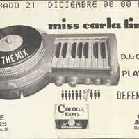 - Un evento llamado "IN THE MIX" con Miss Carla Tintoré, que tendrá lugar el sábado 21 de diciembre a las 00:00 hs en Defensa 1575 (hoy es la sala de conciertos Torquato Tasso). El DJ invitado es Orlando. El evento cuenta con el patrocinio de Corona Extra. También se mencionan Strobe Records (Av. Cabildo 2398. Loc: 20) y Cinema Records (Florida 537. Loc: 431). Se incluye una imagen de un Playmobil.