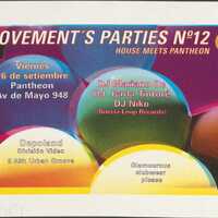 - La "MOVEMENT'S PARTIES Nº12" que se llevará a cabo el viernes 26 de septiembre en Pantheon, ubicado en Av. de Mayo 948. El evento se titula "HOUSE MEETS PANTHEON". Se solicita "Glamourous clubwear" y se incluye la instrucción "SEND A FOTO: ALEJANDRO ROS".