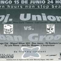 - Una versión rectangular de la promoción anterior, que resalta las 11 horas de "non stop beatmix" el Domingo 15 de Junio, detallando las alineaciones de DJ. Union y Urban Groove en el "friendly confront", y mostrando una dedicatoria "memory love & respect to the sister Marcelo Rapan 1962-1997".