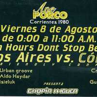 - Un anuncio para un evento de "Eleven Hours Dont Stop Beatmix" el "Viernes 8 de Agosto de 0:00 a 11:00 A.M.", presentando una confrontación amistosa "Buenos Aires vs. Córdoba", con una lista de cinco DJs representando a Buenos Aires y tres a Córdoba.